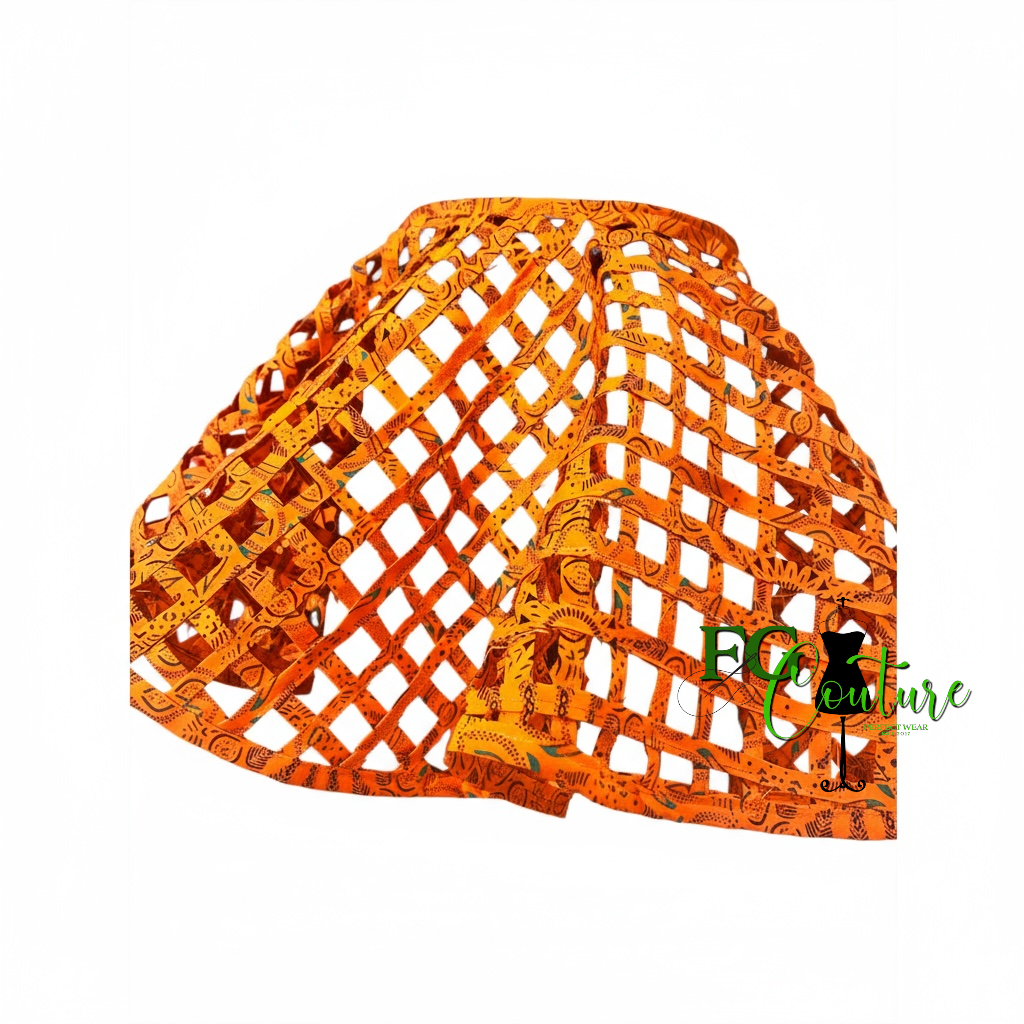 A net African print fabric skirt belt is a modern and unique accessory that combines the vibrant, culturally rich patterns of African wax print fabric with the delicate, sheer texture of a net overlay. This fusion creates a bold and distinctive statement piece that adds color, texture, and volume to an outfit. A net African print skirt belt is typically designed to add volume and flair around the waist . This is flare construction that fan out over the hips, resembling a peplum or a small overskirt.